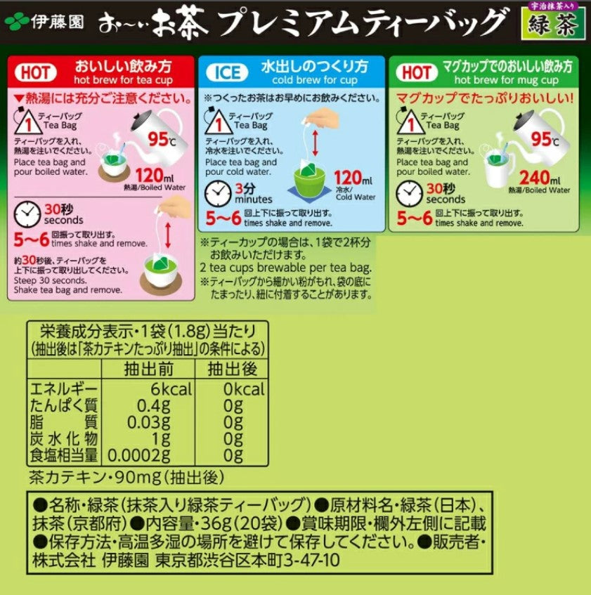 - Practicidad premium: bolsitas fáciles de usar, conservando la calidad y frescura del té japonés.