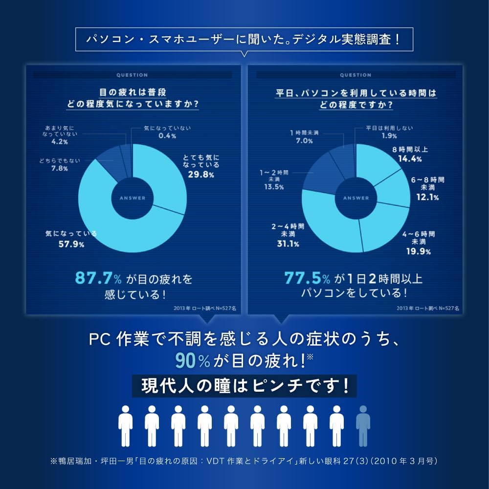Diseñado específicamente para personas que pasan largas horas frente a pantallas, el Rohto Digi Eye alivia la fatiga ocular, el enrojecimiento y la sequedad causados por el uso intensivo de dispositivos como teléfonos, computadoras y tabletas.